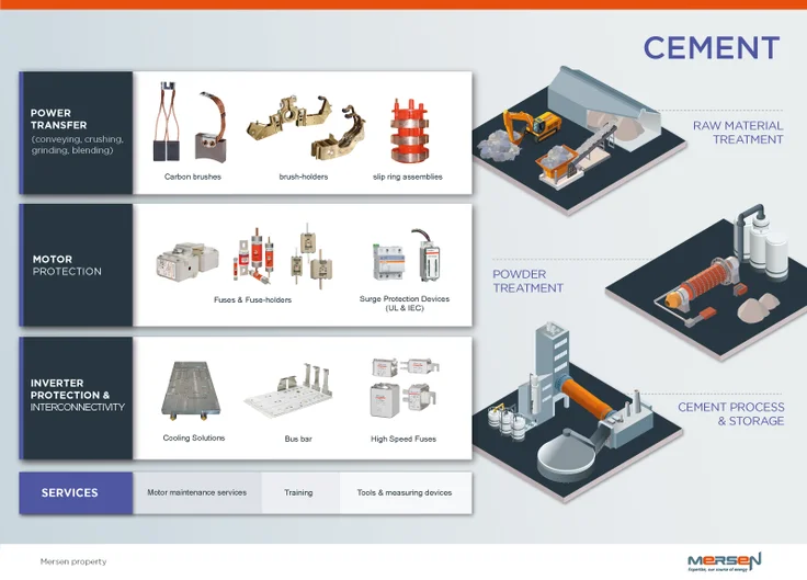 保护临界荷载和资产管理也同样重要。美尔森方案选择多样——从过流保护到浪涌保护、冷却和互联解决方案——可满足水泥行业市场参与者在配电或电源转换等方面的不同需求。