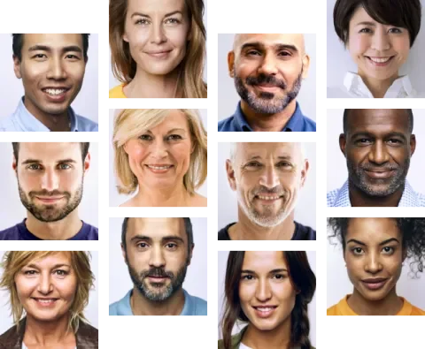 mosaic image block with faces in close-up