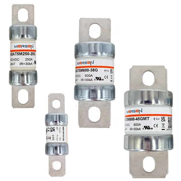 美尔森的ABAT产品系列是直流过流保护(O.C.P.)产品组合中的一部分,为电池蓄电系统稳定运行而开发。 ABAT5M 熔断器为 500 VDC 应用而设计,额定电流为 60 至 800 A,符合 IEC 60 269-7 熔断器标准,适用于电池保护。