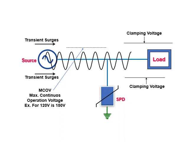 - Maximum Continuous Voltage Rating (MCOV), is the steady state (RMS) voltage that the SPD can withstand without being damaged. A surge is by definition, being a very short term, high magnitude voltage event, that is different from an over-voltage. A damaging overvoltage lasting for even a few cycles (5ms) may be damaging to the SPD. It is important to select an SPD with properly rated MCOV rating, with margin (generally 15-20% is appropriate). (reference EPRI, IEEE)
