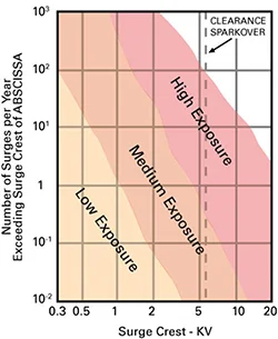 - Medium exposure: systems and geographical areas known for medium to high lightning activity or with significant switching transients or both